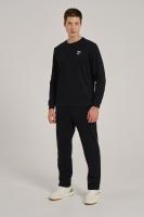 Стандартный крой Regular Fit создает аккуратный силуэт, подчеркивающий спортивную форму без ограничения движений. Усиленные манжеты на рукавах и по низу свитшота сохраняют форму изделия, обеспечивая комфортную посадку. Минималистичный логотип на груди, добавляет сдержанный брендовый акцент без излишней броскости. Универсальный черный цвет легко сочетается с любым низом – от классических джинсов до спортивных брюк.