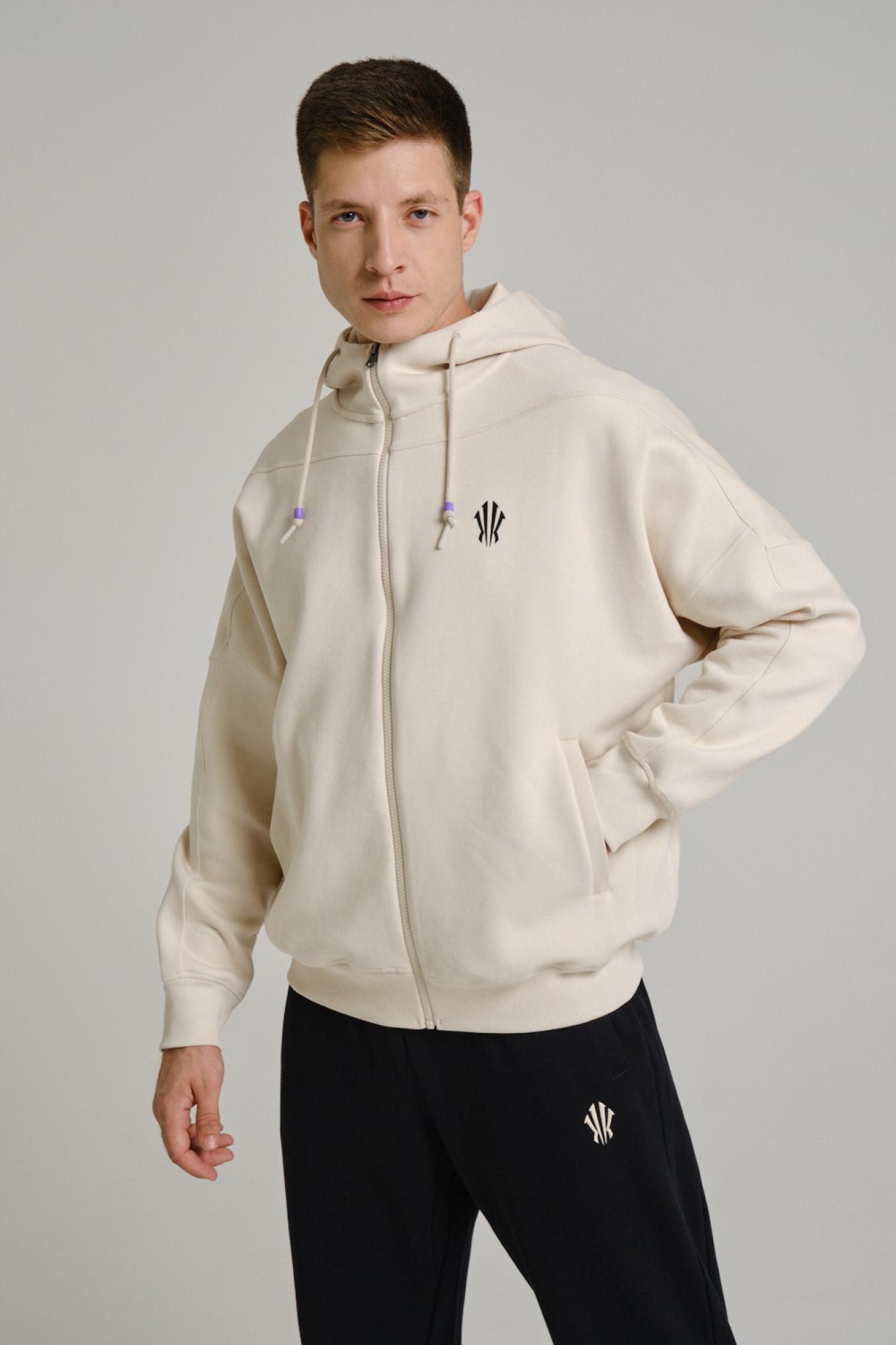 Дизайн толстовки в бежевом цвете подчеркивает ее связь с природными силами: